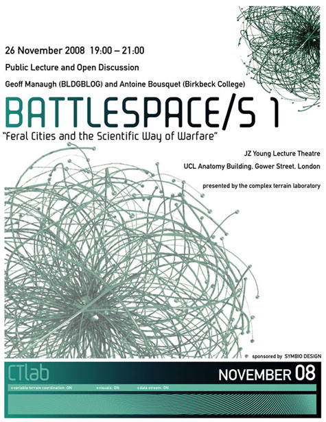 - Feral Cities and the Scientific Way of Warfare University College London. 8 November 2010. Video.URL: https://itunes.apple.com/us/itunes-u/feral-cities-scientific-way/id390453591. [View on iTunes] [Event Poster]